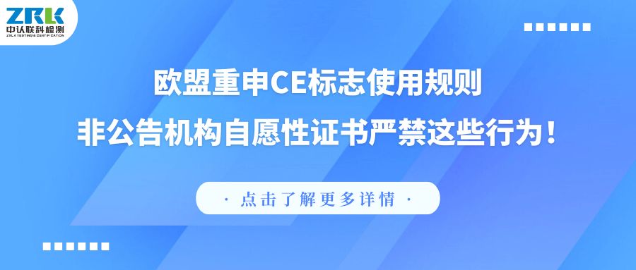 近日,為消除消費(fèi)者對證書性質(zhì)的誤解,確保CE標(biāo)志作為歐盟強(qiáng)制性符合性聲明的權(quán)威性和清晰度,歐盟再次重申了2022年6月29日發(fā)布的CE標(biāo)志的使用規(guī)則COMMISSION NOTICE《The ‘Blue Guide’ on the implementation of EU product rules 2022》。該規(guī)則特別指出:自愿性證書中不得使用“certification”、“independent third party”等字樣,且嚴(yán)禁出現(xiàn)CE標(biāo)志。